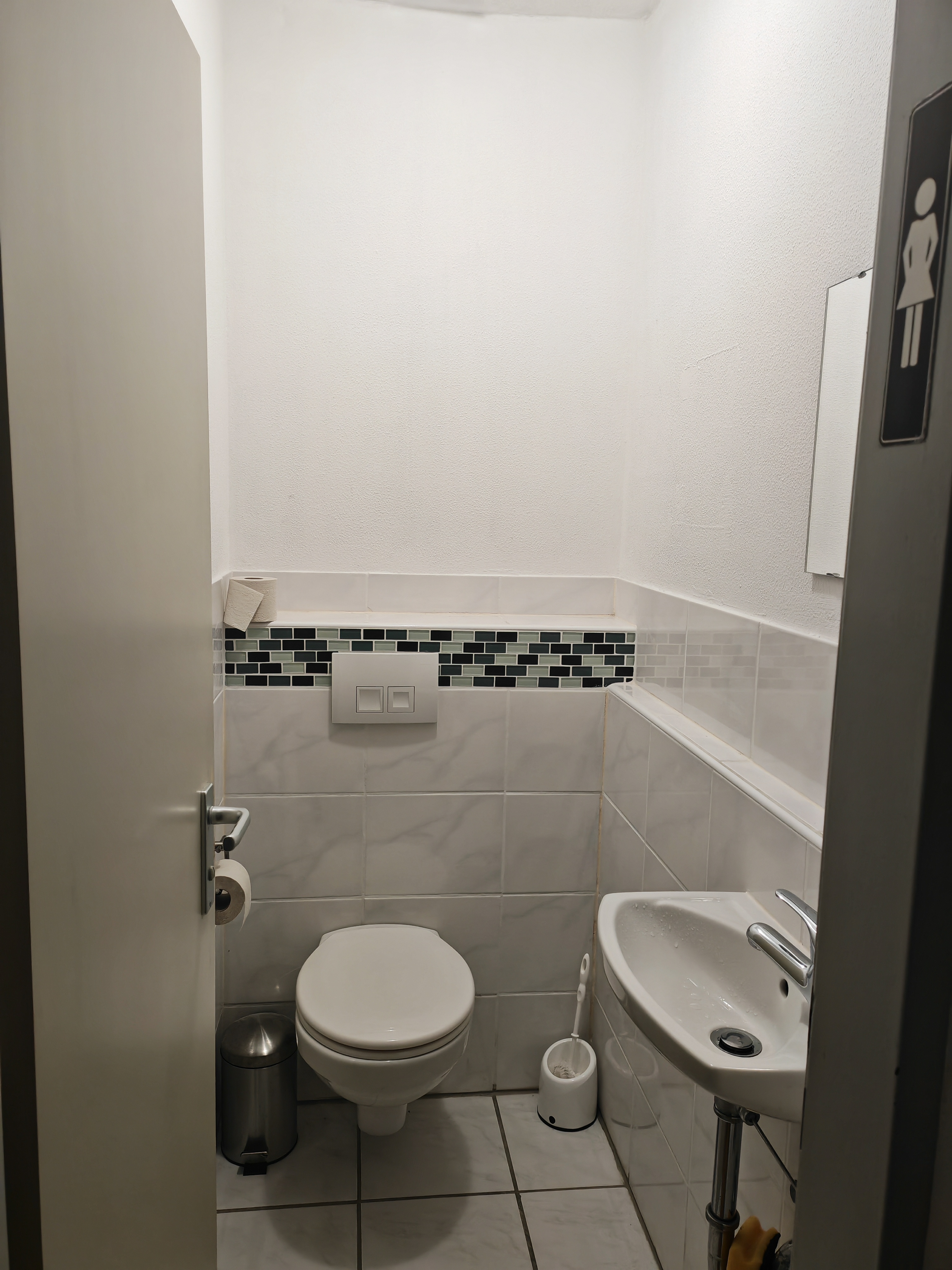 Ein freundlicher, großzügiger Eingangsbereich, zwei Büroräume, zwei voneinander getrennte WC-Räume und einer Miniküche.